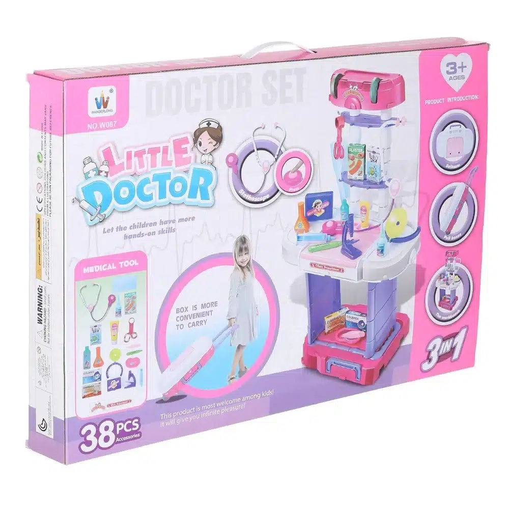 | عدد القطع | عدة طبية متنوعة: سماعة – سرنجة – ترمومتر – بطاقة طبيب |