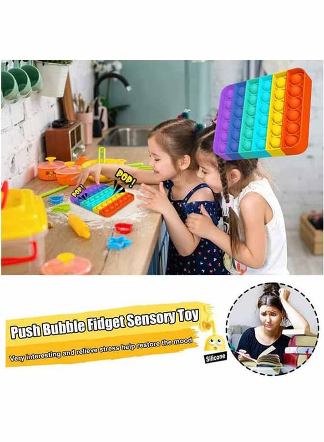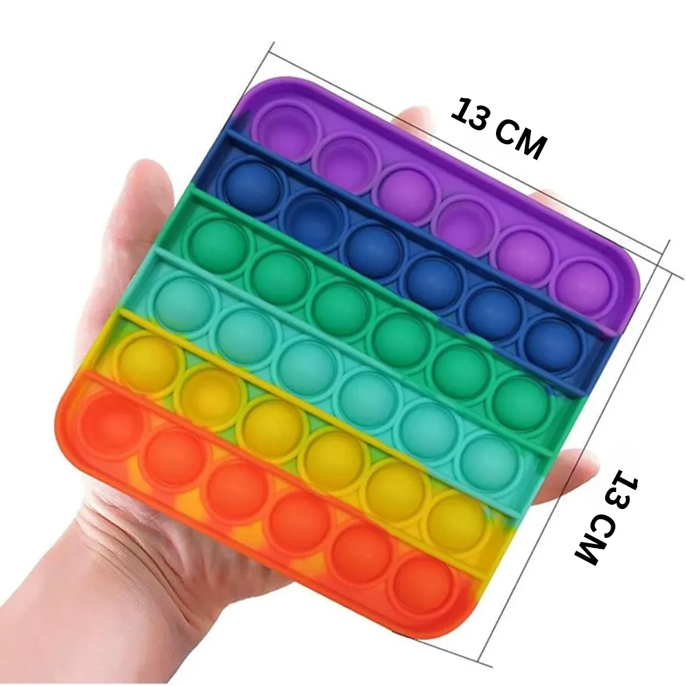 لعبة بوب ات سيليكون بألوان قوس قزح فقاعات قابلة للعكس تصميم مربع مريح تساعد على تهدئة الطفل وتنمية التركيز